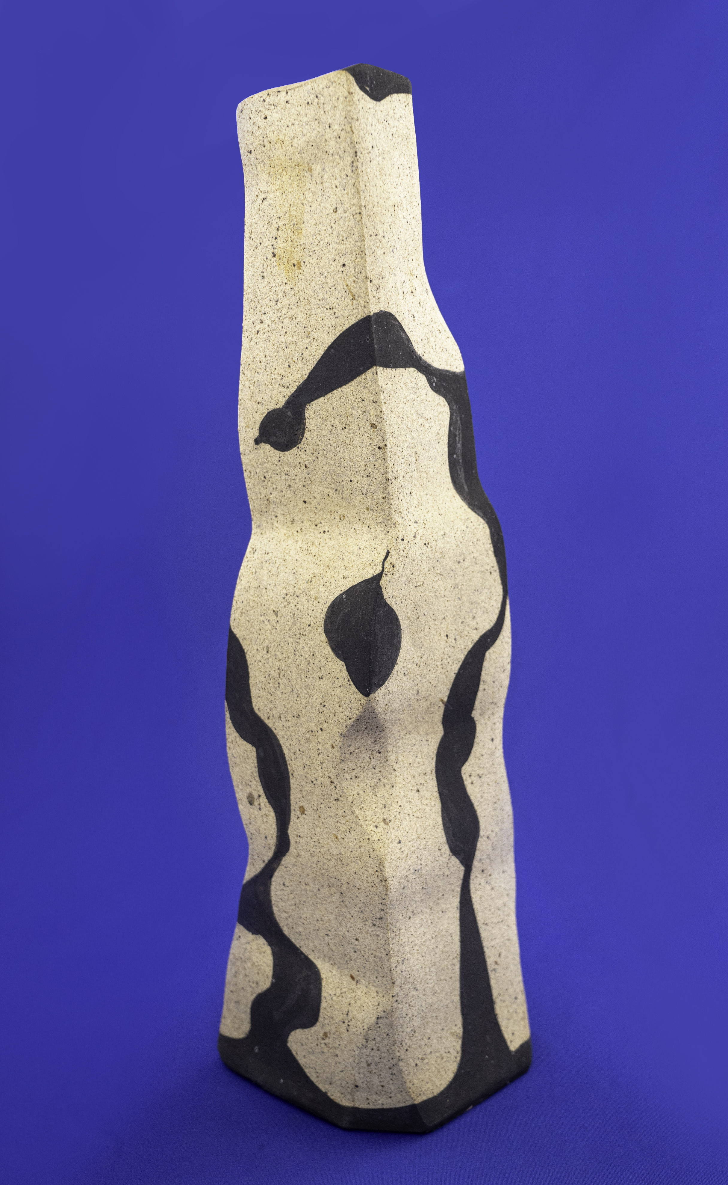 Michel Hutin is a Frenchman, living and working in Auroville, Pondicherry, for more than 25 years. He is a self-taught potter though he spent some time at the Golden Bridge Pottery in Pondicherry. He lives and works in his studio in the picturesque Auroville community of Dana. His early work was built with thick slabs of soft clay cut through with a thin wire. According to him, “The result was fresh and spontaneous but too chancy.” Now he builds directly with thinner slabs and does not ‘cut’. It is simpler, more immediate and Hutin feels it brings him a step closer towards solving a problem that is of deep concern to him – how to have a form look both controlled and natural at the same time. “All my recent works have been made in the same way,” he says, “I join soft undulating slabs of clay. While I control more or less the arrangement of these undulations, the lines they create at their intersections are always a surprise and often a delight. I love these lines—their rhythm, melody and counterpoint—as they interact with each other, liberating the form. I also like the way light enhances the outline of the piece, a bit like looking at mountains at sunrise