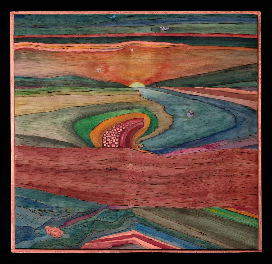 Painting is my meditation. I go inside the silence and find an inner focus and balance. From this place of harmony and contentment flows the inspiration for my work. I can't remember when I started drawing and painting; my only remembrance is that I was doing it naturally from when I was very young. As a child and young adult, I enjoyed following drawing and painting lessons in my free time at the art academy in Antwerp, Belgium. I remember painting murals on the walls of my parents' house. In the years after, I experimented with different materials like oil paint, acrylic, pastel crayons, aquarelle…. I came across a book, 'Zen Seeing, Zen Drawing,' and became fascinated by the organic way of this method of seeing and putting it down on paper without interference from the mental mind. The results were amazing. Another part of this way of expressing is the simplicity of the materials, pencil and paper. From this, I moved on to the ease of using a pen, ink, or just a marker on paper. The fluidity of lines and the surprisingly beautiful things that can arise from a simple drawing made me dive into and explore this world of grace and the unexpected. Out of this came the love for using lines, connecting them in all different ways, and seeing what the eye creates in the end. From this creation, I work forward. Before, I was already exploring the mandala with great joy, and now I incorporated my love for connecting lines with this form of art. In 2017, I started working on pieces of wood using the technique of pyrography and later worked on carving with ink, watercolor, pencil, gouache, gold paint, and gold powder. Since I came to live in Auroville, I feel much more free to explore the possibilities of expressing myself in my artwork. It's an exciting, sometimes flowing, and sometimes difficult exploration of my inner world and experience. A growing awareness about my inner and outer life makes my process of painting more reflective and contemplative. During the making of the painting, the image grows before my eyes; only then can I steer it in some direction. It is not me who constructs the paintings; it's a play between what the lines are doing with the space and what I see coming into existence. While painting, I am looking for something that is uplifting, that can bring me to a higher state of consciousness. Something that can improve my worldview, broaden it to new perspectives. Art is a world where I feel I can dissolve my person for a while, stand still, and dive into the unknown. When I want to create a piece of art, it needs to bring a message of hope, a feeling of goodness, a ray of light to the being, a fresh look at the world, an intimacy, and reconnection with the soul. In these series of paintings, the golden light is a central factor emerging again and again. No wonder these paintings were inspired by the sun here in India. Also, the tree of life, of existence, holds its central place. A mandala is a term for a plan, map, or geometric pattern that metaphysically or symbolically represents the cosmos. These three – the golden light, the tree of life, and the mandala – form the basis of these series of paintings. E-mail Contact: michielsenchris@gmail.com Crystal, Auroville