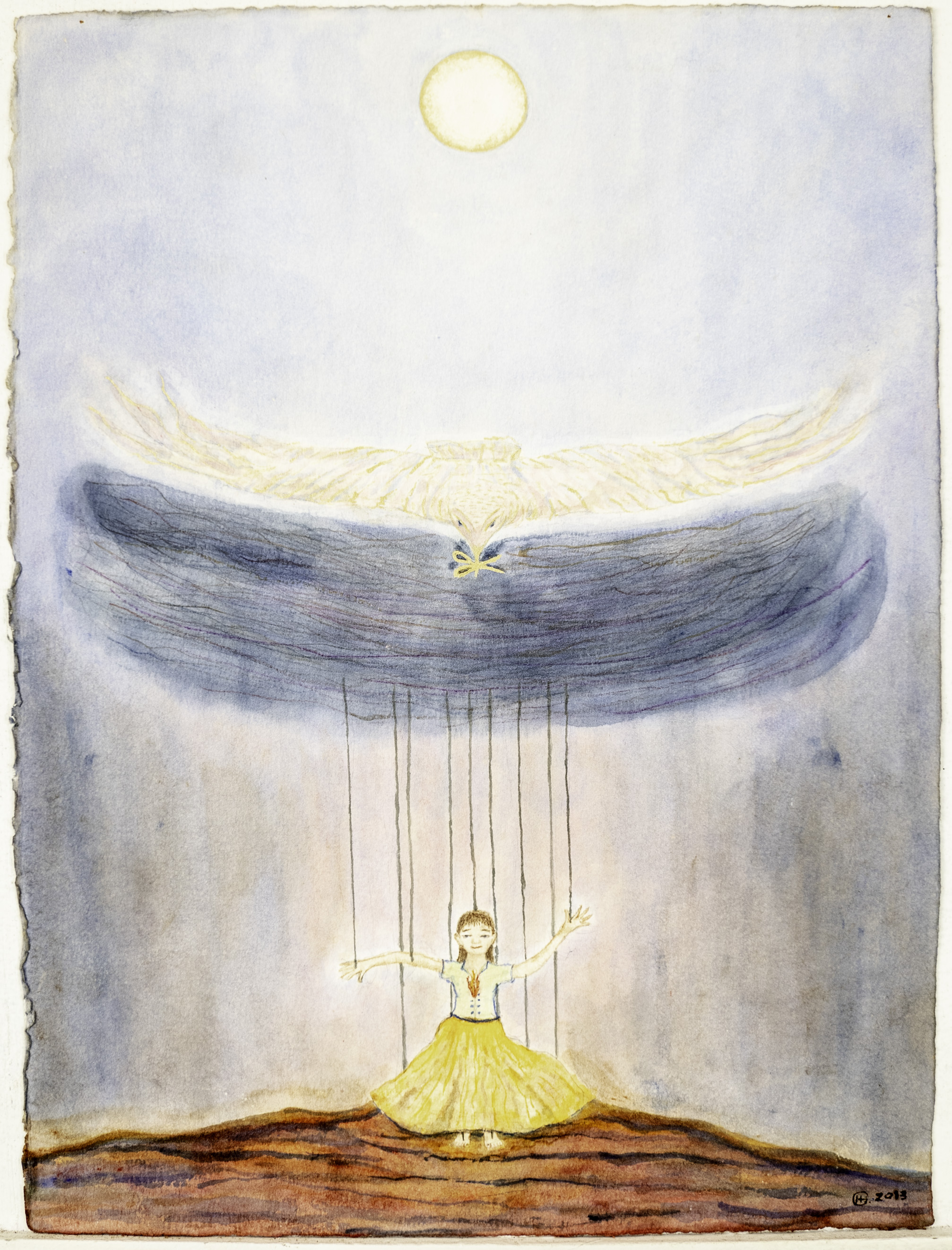 Helene Gagnon, born in Montreal, studied Sciences in college and Anthropology at University of Montreal for a short time. Then she turned towards the visual arts and obtained a Bachelor’s degree (printmaking) at the University of Quebec in Montreal in 1977. For many years, she has explored and perfected her visual expression in drawing, painting and stained glass. At the same time, she has studied and practiced singing, modern dance and theatre. In 1986, she began researching into the inner world which led her to take the path in search of the Self. Her visual work sustains and nourishes her inner research. She has been drawing and painting for more than thirty years. In 2004 she came to Sri Aurobindo Ashram to continue her inner work through Mother and Sri Aurobindo. She is living in Auroville since many years.