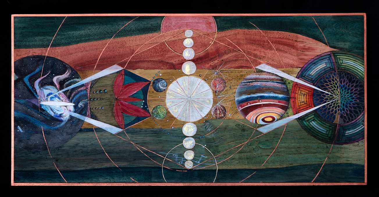 Painting is my meditation. I go inside the silence and find an inner focus and balance. From this place of harmony and contentment flows the inspiration for my work. I can't remember when I started drawing and painting; my only remembrance is that I was doing it naturally from when I was very young. As a child and young adult, I enjoyed following drawing and painting lessons in my free time at the art academy in Antwerp, Belgium. I remember painting murals on the walls of my parents' house. In the years after, I experimented with different materials like oil paint, acrylic, pastel crayons, aquarelle…. I came across a book, 'Zen Seeing, Zen Drawing,' and became fascinated by the organic way of this method of seeing and putting it down on paper without interference from the mental mind. The results were amazing. Another part of this way of expressing is the simplicity of the materials, pencil and paper. From this, I moved on to the ease of using a pen, ink, or just a marker on paper. The fluidity of lines and the surprisingly beautiful things that can arise from a simple drawing made me dive into and explore this world of grace and the unexpected. Out of this came the love for using lines, connecting them in all different ways, and seeing what the eye creates in the end. From this creation, I work forward. Before, I was already exploring the mandala with great joy, and now I incorporated my love for connecting lines with this form of art. In 2017, I started working on pieces of wood using the technique of pyrography and later worked on carving with ink, watercolor, pencil, gouache, gold paint, and gold powder. Since I came to live in Auroville, I feel much more free to explore the possibilities of expressing myself in my artwork. It's an exciting, sometimes flowing, and sometimes difficult exploration of my inner world and experience. A growing awareness about my inner and outer life makes my process of painting more reflective and contemplative. During the making of the painting, the image grows before my eyes; only then can I steer it in some direction. It is not me who constructs the paintings; it's a play between what the lines are doing with the space and what I see coming into existence. While painting, I am looking for something that is uplifting, that can bring me to a higher state of consciousness. Something that can improve my worldview, broaden it to new perspectives. Art is a world where I feel I can dissolve my person for a while, stand still, and dive into the unknown. When I want to create a piece of art, it needs to bring a message of hope, a feeling of goodness, a ray of light to the being, a fresh look at the world, an intimacy, and reconnection with the soul. In these series of paintings, the golden light is a central factor emerging again and again. No wonder these paintings were inspired by the sun here in India. Also, the tree of life, of existence, holds its central place. A mandala is a term for a plan, map, or geometric pattern that metaphysically or symbolically represents the cosmos. These three – the golden light, the tree of life, and the mandala – form the basis of these series of paintings. E-mail Contact: michielsenchris@gmail.com Crystal, Auroville