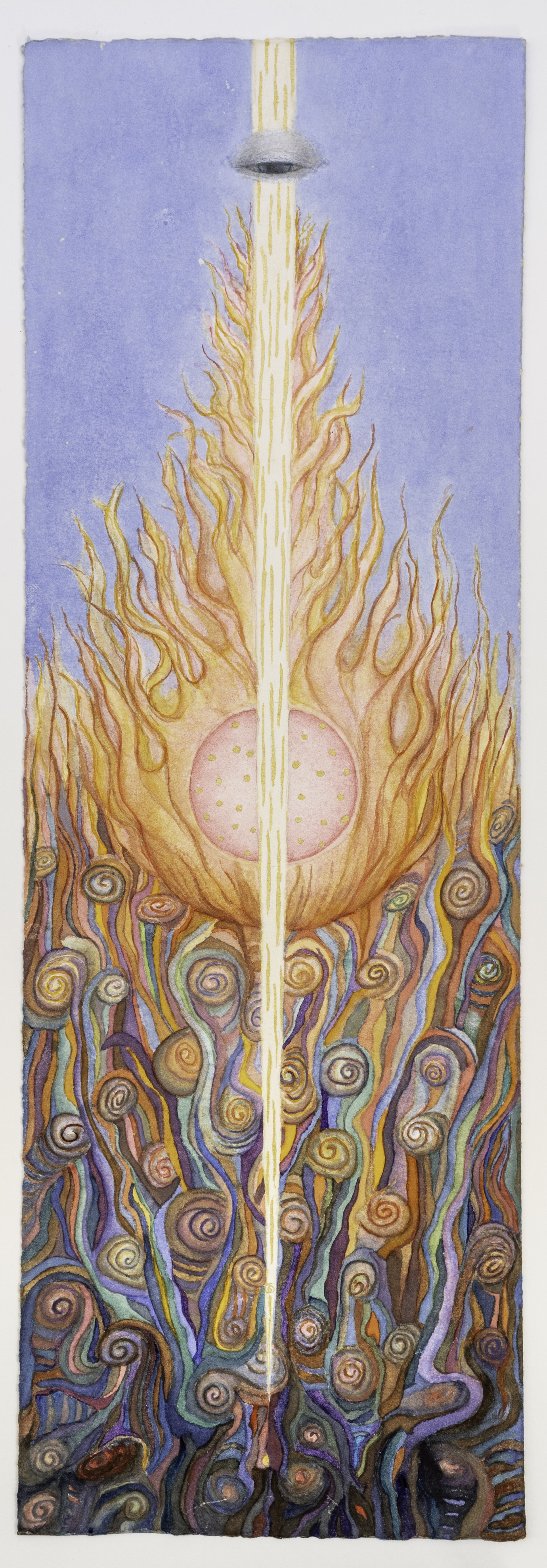 Helene Gagnon, born in Montreal, studied Sciences in college and Anthropology at University of Montreal for a short time. Then she turned towards the visual arts and obtained a Bachelor’s degree (printmaking) at the University of Quebec in Montreal in 1977. For many years, she has explored and perfected her visual expression in drawing, painting and stained glass. At the same time, she has studied and practiced singing, modern dance and theatre. In 1986, she began researching into the inner world which led her to take the path in search of the Self. Her visual work sustains and nourishes her inner research. She has been drawing and painting for more than thirty years. In 2004 she came to Sri Aurobindo Ashram to continue her inner work through Mother and Sri Aurobindo. She is living in Auroville since many years.