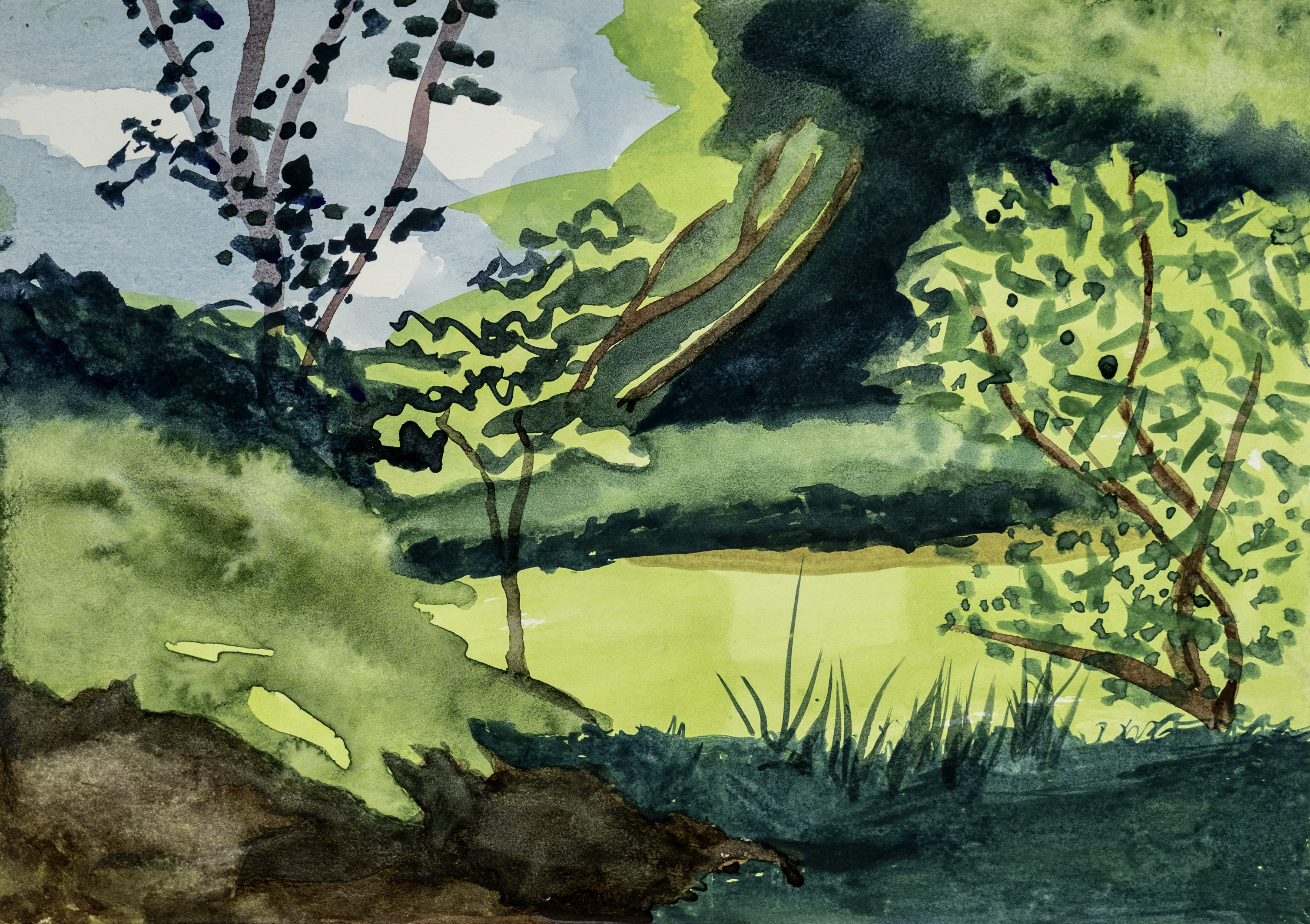 My work explores a reordering of the landscape by painting and drawing the earth from aerial views. I synthesize patterns that emerge when we back away from the earth, just as they can emerge when we step back from our everyday lives. I invite disorientation. What does it mean for our visual perception to be conscious of ourselves floating in space, where the visual polarities of horizontal and vertical dissolve into a sense of dimensionality? Above and below are no longer directions but densities. When humans stood on the moon and watched the earthrise, did our personal and collective perception of space change? My interests and points of reference include geological time, Aboriginal art rooted in Dreamtime, Peru's Nasca and Ica lines, Hopi sand painting, and East Indian women's Rangavalli patterns. As I work on the Gaia series, I paint landscapes of the environment where I am living at this time. Doing this keeps me rooted and respectful of nature.