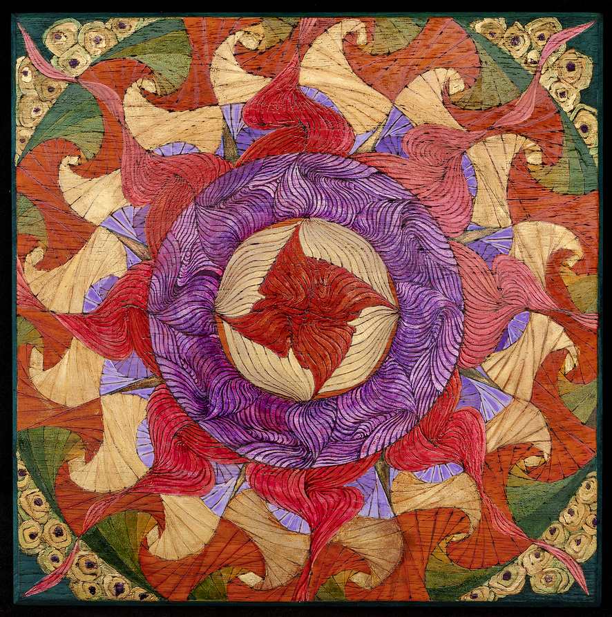 Painting is my meditation. I go inside the silence and find an inner focus and balance. From this place of harmony and contentment flows the inspiration for my work. I can't remember when I started drawing and painting; my only remembrance is that I was doing it naturally from when I was very young. As a child and young adult, I enjoyed following drawing and painting lessons in my free time at the art academy in Antwerp, Belgium. I remember painting murals on the walls of my parents' house. In the years after, I experimented with different materials like oil paint, acrylic, pastel crayons, aquarelle…. I came across a book, 'Zen Seeing, Zen Drawing,' and became fascinated by the organic way of this method of seeing and putting it down on paper without interference from the mental mind. The results were amazing. Another part of this way of expressing is the simplicity of the materials, pencil and paper. From this, I moved on to the ease of using a pen, ink, or just a marker on paper. The fluidity of lines and the surprisingly beautiful things that can arise from a simple drawing made me dive into and explore this world of grace and the unexpected. Out of this came the love for using lines, connecting them in all different ways, and seeing what the eye creates in the end. From this creation, I work forward. Before, I was already exploring the mandala with great joy, and now I incorporated my love for connecting lines with this form of art. In 2017, I started working on pieces of wood using the technique of pyrography and later worked on carving with ink, watercolor, pencil, gouache, gold paint, and gold powder. Since I came to live in Auroville, I feel much more free to explore the possibilities of expressing myself in my artwork. It's an exciting, sometimes flowing, and sometimes difficult exploration of my inner world and experience. A growing awareness about my inner and outer life makes my process of painting more reflective and contemplative. During the making of the painting, the image grows before my eyes; only then can I steer it in some direction. It is not me who constructs the paintings; it's a play between what the lines are doing with the space and what I see coming into existence. While painting, I am looking for something that is uplifting, that can bring me to a higher state of consciousness. Something that can improve my worldview, broaden it to new perspectives. Art is a world where I feel I can dissolve my person for a while, stand still, and dive into the unknown. When I want to create a piece of art, it needs to bring a message of hope, a feeling of goodness, a ray of light to the being, a fresh look at the world, an intimacy, and reconnection with the soul. In these series of paintings, the golden light is a central factor emerging again and again. No wonder these paintings were inspired by the sun here in India. Also, the tree of life, of existence, holds its central place. A mandala is a term for a plan, map, or geometric pattern that metaphysically or symbolically represents the cosmos. These three – the golden light, the tree of life, and the mandala – form the basis of these series of paintings. E-mail Contact: michielsenchris@gmail.com Crystal, Auroville