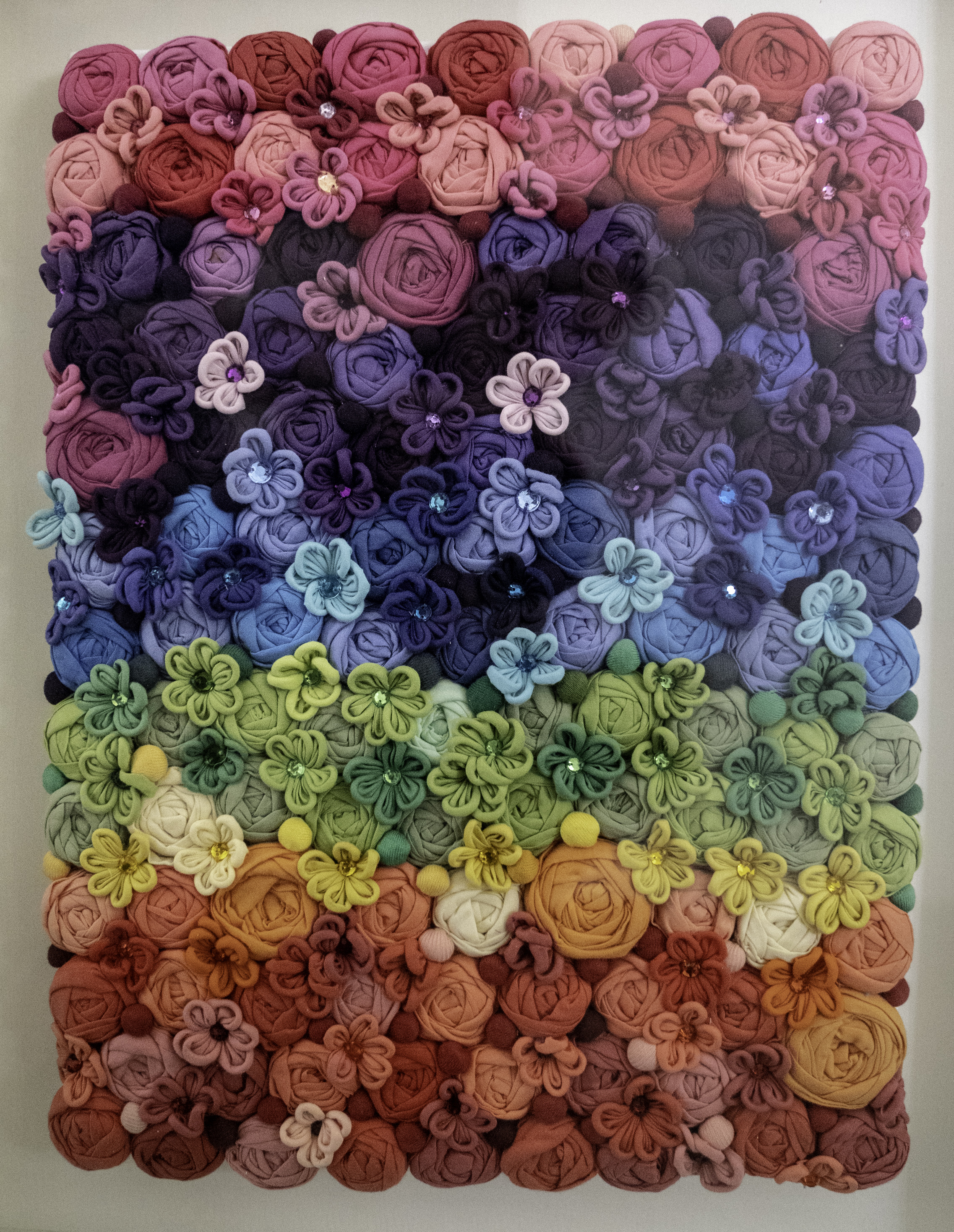Manjula Selvam is an Auroville Artist with creating art works with leftover fabric pieces. She has exhibited her works in Auroville and outside. Born and raised in Auroville Manjula Selvam offers on display her very specific art work – Fabric Art , whereby joyfully displays emotions through vivid colours. Although her path has leaded her into fashion , she follow inspiration in texture, and colors of fabric, and out of it creates mostly abstracts pieces. In short interview Manjula explains the process for her art pieces, from which each of them is made in long hours of meticulous, yet inspirative, almost meditative path. Still in everything Manjula looks for joy, and things which makes her happy, explaining it with a broad smile.