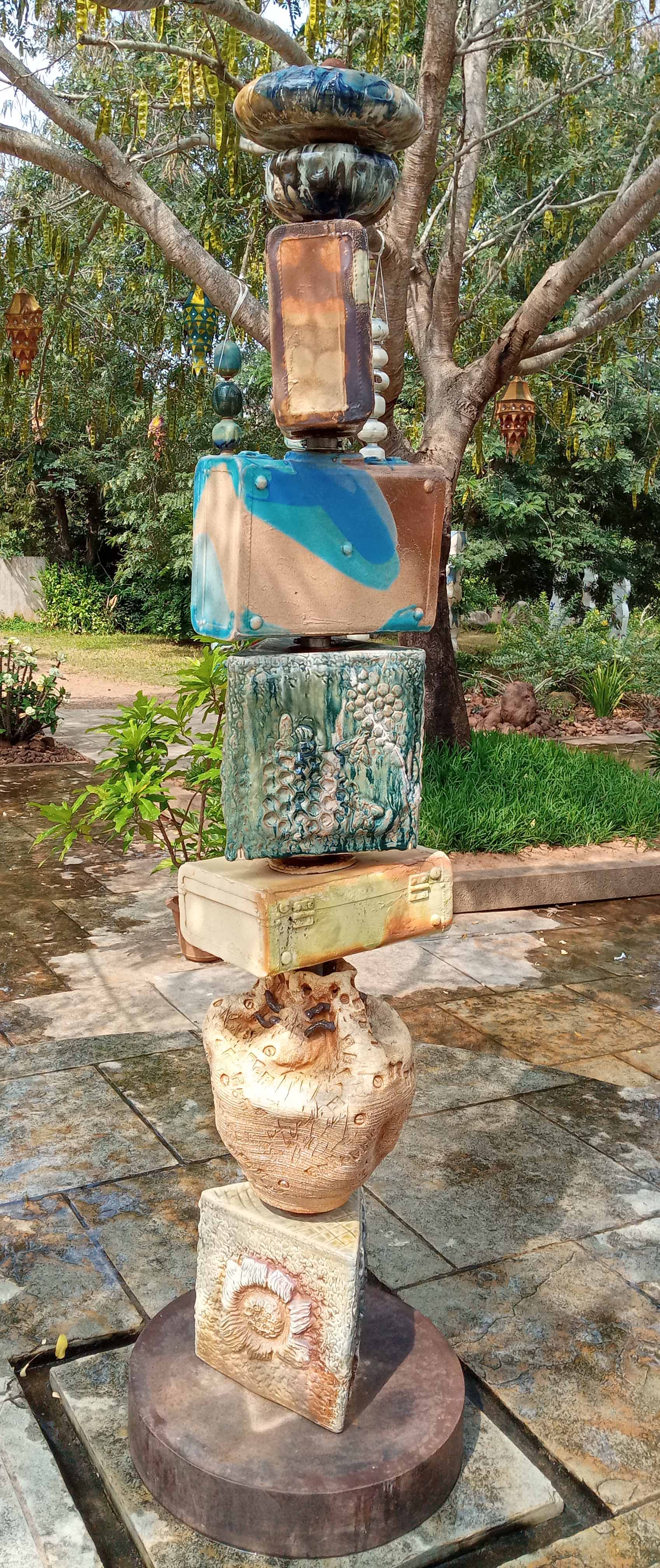 Writer’s CV reads like a travel retrospective. Wander-lust is what he says takes him across the world for invited residencies, workshops and exhibitions. Adil is an architect with a Master’s degree in architecture from the University of Houston, Texas. He worked in Bombay as an architect before reaching Pondicherry to learn ceramics under the tutelage of Deborah Smith and Ray Meeker of Golden Bridge Pottery. Since 2000, he is a partner at Mandala Pottery in Auroville. Writer’s ceramics and large scale paintings have been showcased at several solo and group exhibitions in Japan, China, India, Indonesia, Australia, Estonia, France and USA. In 2013, Writer was instrumental in arranging a residency for a group of 18 Indian ceramists to Fuping that led to their making works for the proposed Museum of Contemporary Indian Ceramics in China. Later in 2014, he organised a residency for another group to Korea. One of his prominent solo exhibitions was “Shades of Grey” at Gaya Design Centre in Bali where he showcased anagama-fired ceramics and batik. Adil explains his inspiration…. “Balinese Hinduism tells us that there is not just good and bad in the world …not just black and white. There is a third median, the centre, the balance. These shades of grey were the focus of the collection.” At Clay-Edge in Gulgong and at Beehive in Canberra, Writer has built and fired largescale mud structures and fired-stacks, having learnt the “fired-house technology” from Ray Meeker of Golden Bridge Pottery, Pondicherry. Besides being a part of numerous group exhibitions in India and abroad, Adil has also had solo shows in Shigaraki, Bali, Mumbai, Delhi, Bangalore, Goa and Auroville. At The Cube Gallery in Goa at two recent shows, Writer paid tribute to Goa’s legends, Mario Miranda and Manohar Sardesai with a series of sculptural ceramics inspired by their cartoons and poetry at a solo show, “Sentinels”, inspired by abandoned gateposts of Goa, Bombay and Colombo. At Shigaraki, one of the oldest kiln-sites in Japan, Adil culminated his three-month invited residency with a solo show titled “Himitsu Te Uso” His works from Shigaraki were later exhibited at Gallery Art & Soul, Bombay, at a show titled “Secrets & Lies”. He also featured in, “Six by Six: Interpreting Craft in Gondwana”, a path-breaking Indo-Australian show at the Australian Triennial in Canberra featuring three Indian and three Australian ceramists. This spirit of dialogue led to “In Collaboration” with Laxma Goud, at Pundole Art Gallery in Mumbai. “Working with an iconic figure like him, seeing him wield the needle tool on clay, has been indelible. He freed me of my inhibitions of drawing on my canvases and clay work!” A subsequent collaboration was with Pamanisamy, a respected traditional potter from Pudukotai, who is known for the large terracotta horses he makes. Writer worked with him in making large traditional pot forms with Tamil text on them, for an exhibition, Akshara, which has already toured in France, Egypt and India. This work is now a part of a show titled Symbols & Scripts, at the Indian Heritage Centre’s Museum in Singapore. Writer was invited to Singapore in April 2018 to present his work at this show which included live demonstrations, presentations and clay-demonstrations. Writer is a member of the International Academy of Ceramics, Geneva. ADIL WRITER, Mandala Pottery, Dana, Auroville 605101, Tamil Nadu, India. Tel: +91 9443029539; +91 4132622724 (res); +91 4132622685 (pottery) www.adilwriter.com adil@auroville.org.in