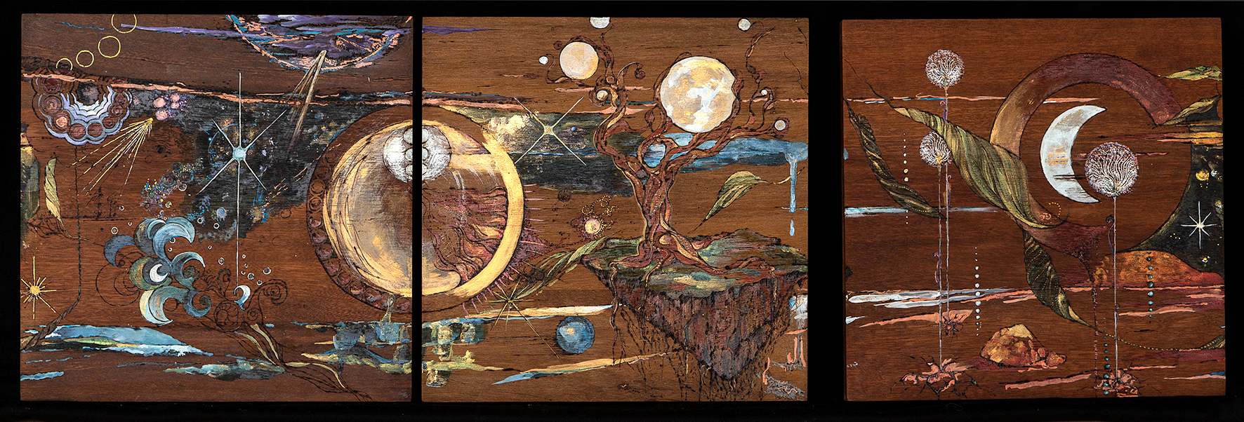 Painting is my meditation. I go inside the silence and find an inner focus and balance. From this place of harmony and contentment flows the inspiration for my work. I can't remember when I started drawing and painting; my only remembrance is that I was doing it naturally from when I was very young. As a child and young adult, I enjoyed following drawing and painting lessons in my free time at the art academy in Antwerp, Belgium. I remember painting murals on the walls of my parents' house. In the years after, I experimented with different materials like oil paint, acrylic, pastel crayons, aquarelle…. I came across a book, 'Zen Seeing, Zen Drawing,' and became fascinated by the organic way of this method of seeing and putting it down on paper without interference from the mental mind. The results were amazing. Another part of this way of expressing is the simplicity of the materials, pencil and paper. From this, I moved on to the ease of using a pen, ink, or just a marker on paper. The fluidity of lines and the surprisingly beautiful things that can arise from a simple drawing made me dive into and explore this world of grace and the unexpected. Out of this came the love for using lines, connecting them in all different ways, and seeing what the eye creates in the end. From this creation, I work forward. Before, I was already exploring the mandala with great joy, and now I incorporated my love for connecting lines with this form of art. In 2017, I started working on pieces of wood using the technique of pyrography and later worked on carving with ink, watercolor, pencil, gouache, gold paint, and gold powder. Since I came to live in Auroville, I feel much more free to explore the possibilities of expressing myself in my artwork. It's an exciting, sometimes flowing, and sometimes difficult exploration of my inner world and experience. A growing awareness about my inner and outer life makes my process of painting more reflective and contemplative. During the making of the painting, the image grows before my eyes; only then can I steer it in some direction. It is not me who constructs the paintings; it's a play between what the lines are doing with the space and what I see coming into existence. While painting, I am looking for something that is uplifting, that can bring me to a higher state of consciousness. Something that can improve my worldview, broaden it to new perspectives. Art is a world where I feel I can dissolve my person for a while, stand still, and dive into the unknown. When I want to create a piece of art, it needs to bring a message of hope, a feeling of goodness, a ray of light to the being, a fresh look at the world, an intimacy, and reconnection with the soul. In these series of paintings, the golden light is a central factor emerging again and again. No wonder these paintings were inspired by the sun here in India. Also, the tree of life, of existence, holds its central place. A mandala is a term for a plan, map, or geometric pattern that metaphysically or symbolically represents the cosmos. These three – the golden light, the tree of life, and the mandala – form the basis of these series of paintings. E-mail Contact: michielsenchris@gmail.com Crystal, Auroville